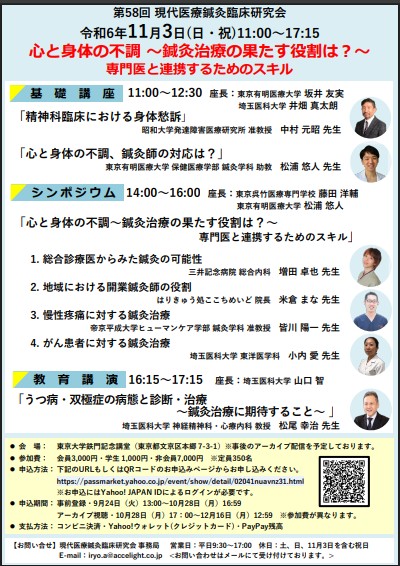 全日本鍼灸学会認定鍼灸師。京都市生まれ。 ●略歴 旧早稲田鍼灸専門学校卒業 明治国際医療大学大学院鍼灸学専攻博士課程前期(修士)終了(鍼灸学修士) 筑波技術大学客員研究員(2014年~2017年) 全日本鍼灸学会認定委員会審査委員(2014年~) 現代医療鍼灸臨床研究会会員(評議員) ●教育 神奈川県立衛生看護専門学校 助産師学科 非常勤講師 (2008年~) 森ノ宮医療大学保健医療学部 鍼灸学科 非常勤講師(2009年~2016年) 東京有明医療大学保健医療学部 鍼灸学科 非常勤講師(2016年~) ●所属学会 全日本鍼灸学会、日本母性衛生学会、日本東洋医学会、日本脳神経外傷学会 ●主な研究テーマ 産婦人科領域における鍼灸治療の研究 軽度外傷性脳損傷および軽度外傷性脳損傷に対する鍼灸治療に関する研究 ●趣味、特技 スキー、音楽鑑賞、読書、写真、旅行、ドライブ、釣り、シュノーケリング、キャンプ、ハイキング、料理、ショッピング、昼寝・・・