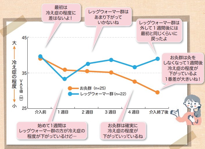 下のグラフに、副院長が主宰している女性鍼灸師フォーラムのホームページに掲載されている「お灸ってすごい」のリーフレットから引用し掲載します。
